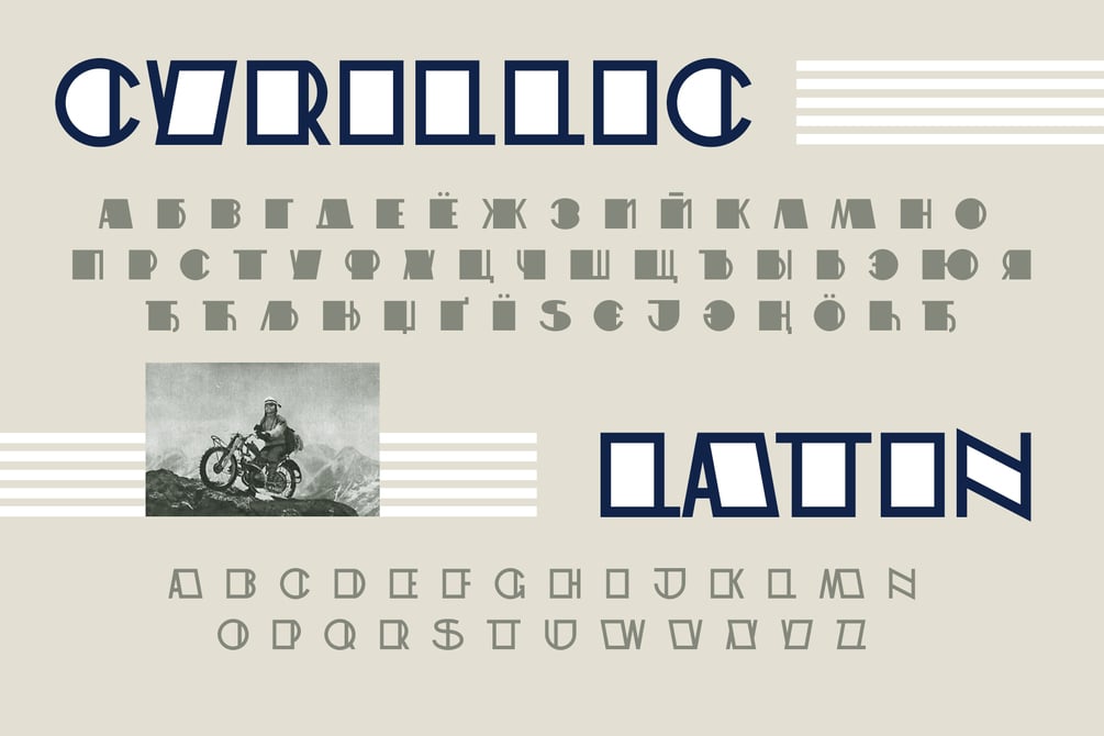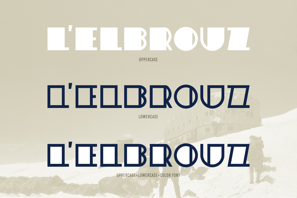 ST-Elbrus is the replica of Soviet magazine lettering. This retro futuristic font is good for headlines, large-format print, branding, posters, fashion designs and logotypes. This is all caps font with two variations. English and Russian alphabets. Letters only.